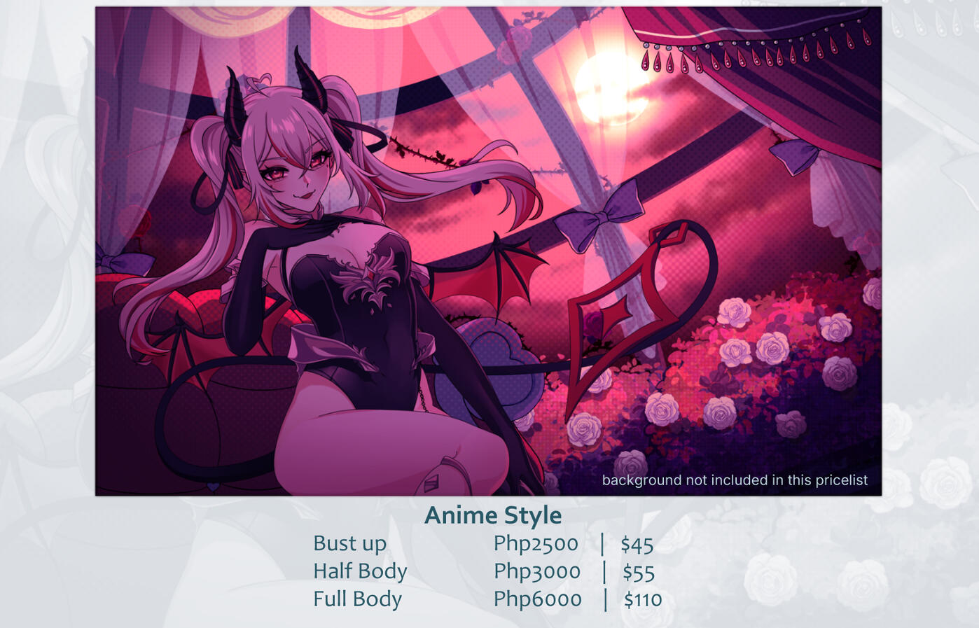 • [Additional expressions] Php 875 | $10Note: Complexity of background may change!Commercial commissions will have doubled prices!